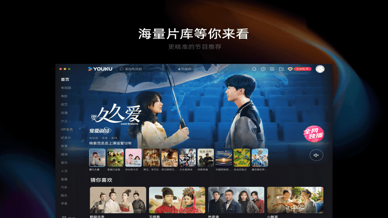优酷客户端这是来自优爱腾之一的优酷为广大电脑用户推出的专用PC客户端软件,优酷视频客户端可以让用户们无需浏览器就可以便捷的在电脑上观看最新的电影、电视剧、综艺和动漫节目,优酷还有一大波自制节原创节目在等待各位喜欢看视频的网友们来观赏哦 !