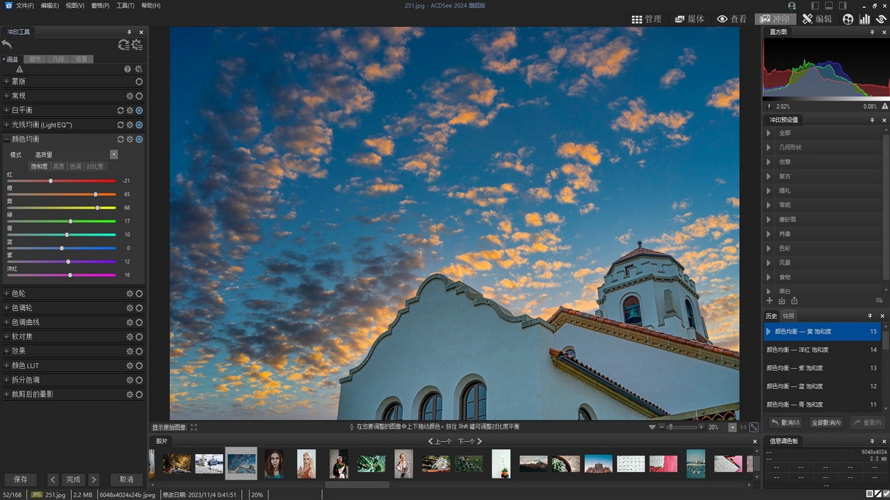 在 “冲印模式” 下,利用全新的 AI 蒙版工具编辑图像(RAW 文件也包括在内),能够为您节省大量宝贵的时间。经过重新设计的蒙版面板为您带来了全新的选择,它可以自动识别并遮盖照片中的主体、背景或者天空。而且,新面板还配备了经典的画刷、线性渐变和径向渐变工具,这些工具能帮助您高效地管理蒙版。有了这些蒙版,您就可以轻松地对照片的特定部分进行编辑,同时完整地保留原始文件,真正实现无损编辑,让照片呈现出最佳效果。