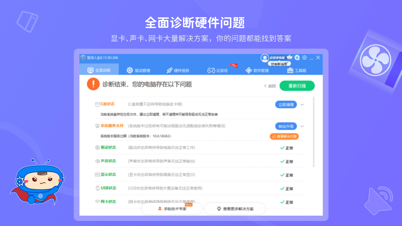 驱动人生 8 以用户为中心,为不同用户的电脑问题和需求提供定制化的维护解决方案。在分析用户电脑的硬件配置、使用习惯、常遇到的问题等多方面因素后,软件会为用户量身定制一套适合其电脑的维护计划。例如,对于经常使用图形设计软件的用户,软件会重点关注显卡和内存的驱动更新与优化,确保图形处理的流畅性和稳定性;对于办公用户,会更注重网络驱动的稳定性和系统的整体运行效率,减少因系统问题导致的工作中断。