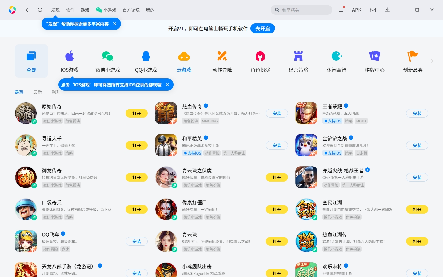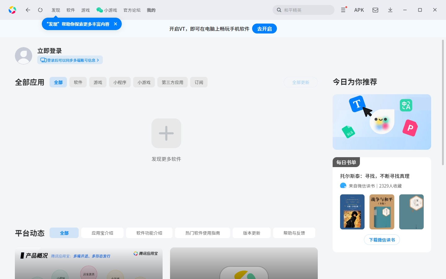 应用宝2025电脑版目前已经更新到了V3.0以上版本,进入了V3.0以上版本之后应用宝电脑版融入了手机模拟器和TV客户端功能,用户安装应用宝电脑版之后可以直接通过应用宝来实现电脑上使用手机软件的功能,应用宝电脑版除此之外还支持云游戏功能哦!光大游戏玩家可以直接通过应用宝电脑版来实现云端畅玩PC和手机端高配置游戏,应用宝电脑版现在已经是手机应用市场+云游戏+模拟器+TV客户端四合一平台,功能十分强大和丰富。