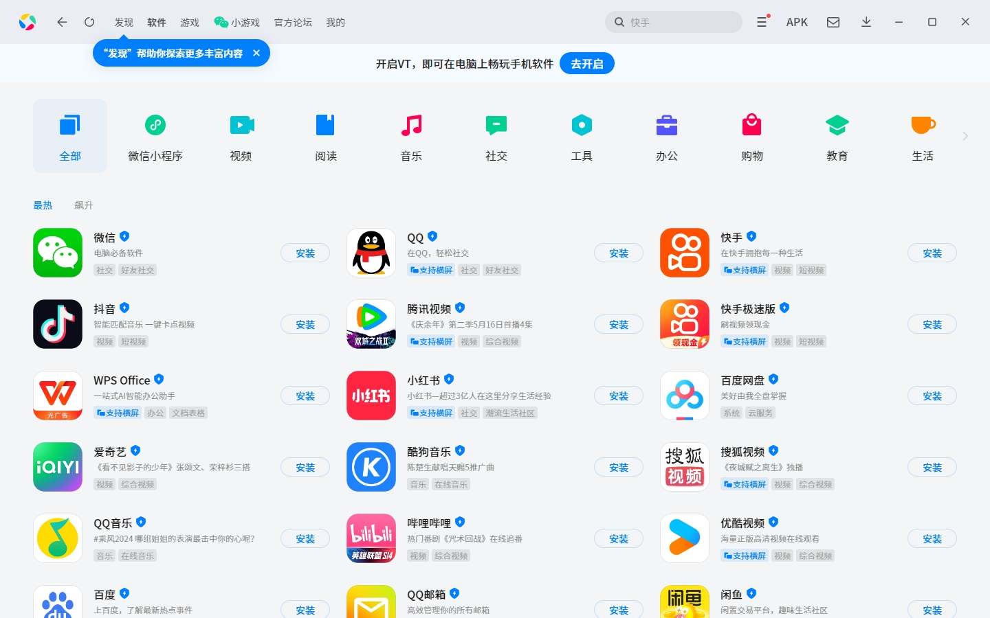直接运行安卓应用:应用宝电脑版支持从 PC 桌面直接打开安卓应用,无需感知应用市场打开界面,应用交互体验与原生 Windows 应用类似,并能无缝对接文件、蓝牙、摄像头等系统能力4.