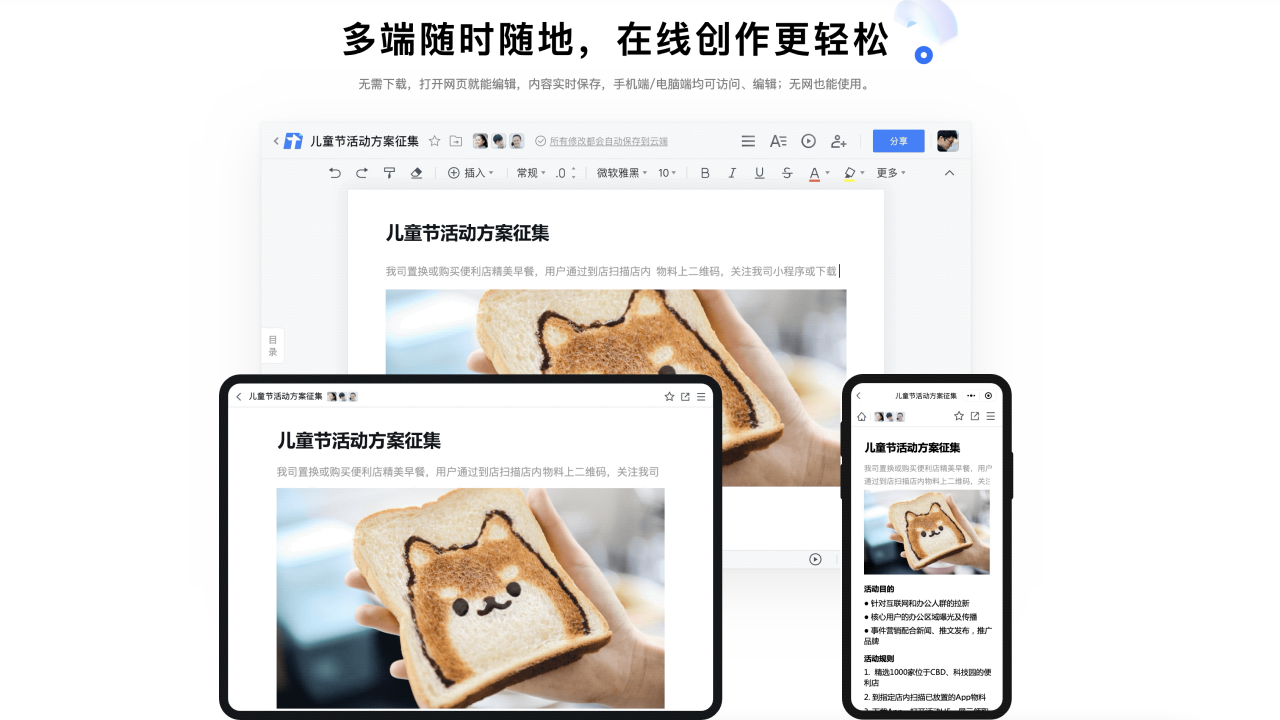 腾讯文档是专业图文创作的优质平台。它有丰富编辑工具,支持图文混排,可多人实时协作,打破时空限制,提高创作效率。