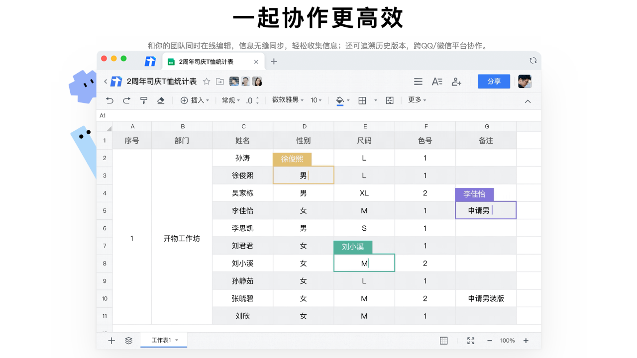 支持多人同时编辑一个文档,信息无缝同步,实时共享数据