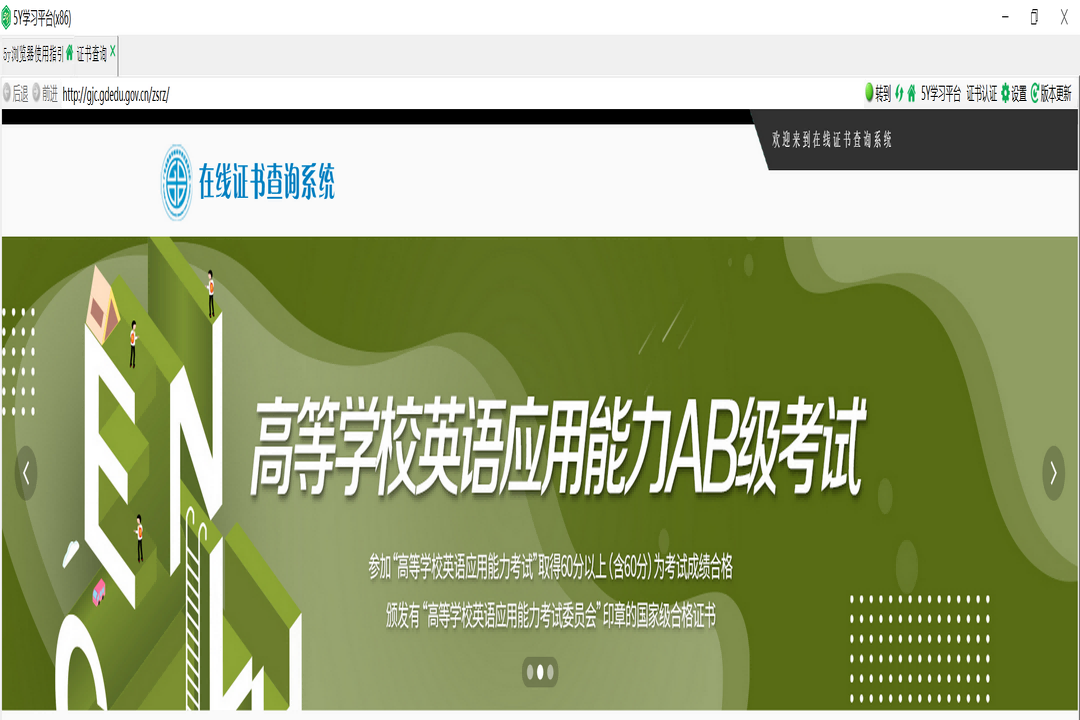 5Y浏览器绿色版这是来自广东省教育厅旗下广东高考试中心推出的5Y学习平台专属教育教学考试客户端,5Y浏览器绿色版旨在让学生通过5Y浏览器绿色版来进行高等计算机等级考试英语考试进行在线测试和在线考试等诸多功能。