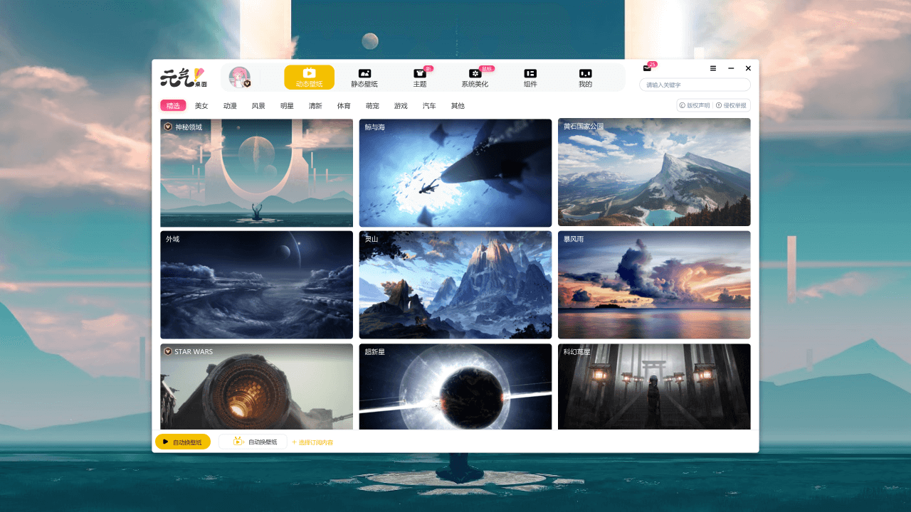 动态壁纸体验:元气桌面中的海量动态壁纸全部采用高性能粒子光照引擎。