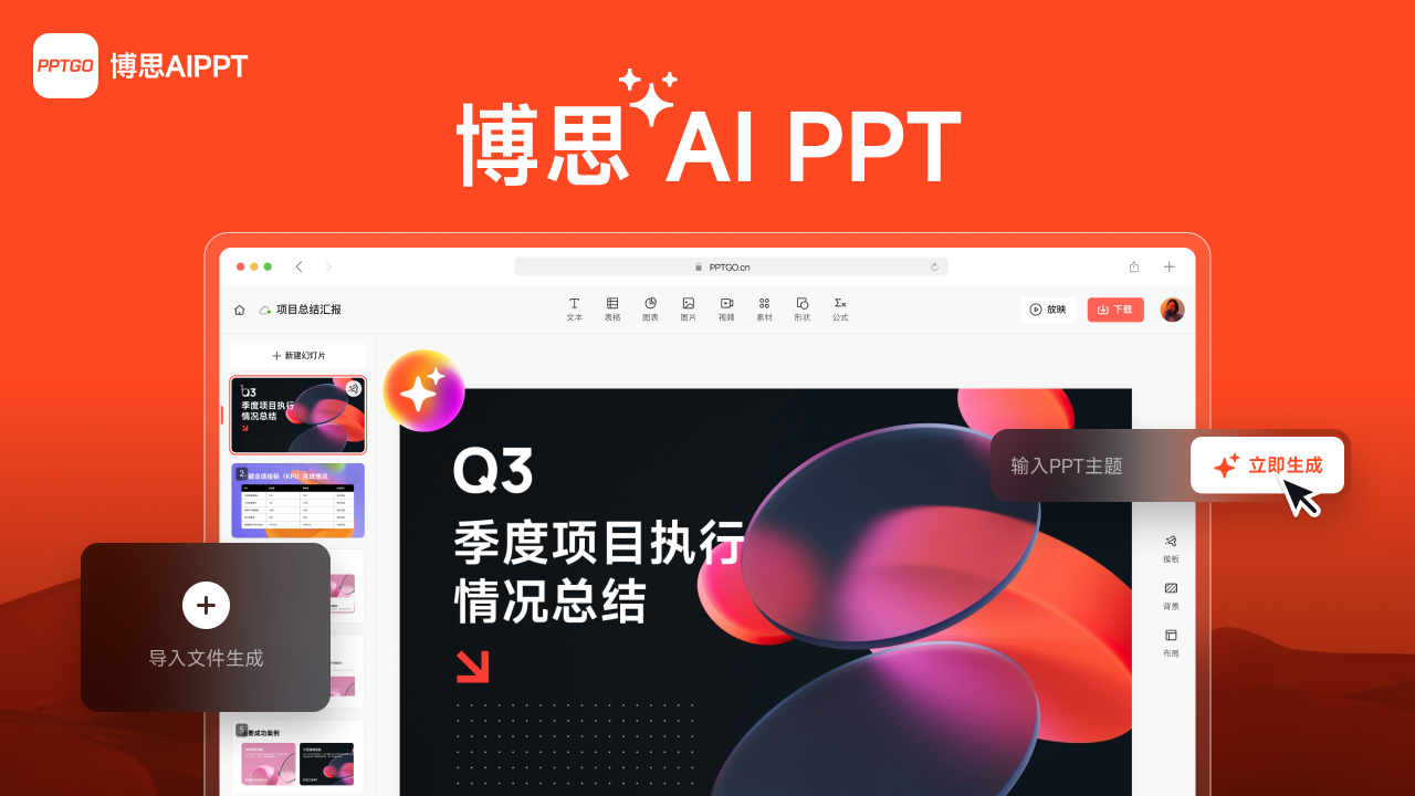 AI 智能驱动,重塑 PPT 创作格局:颠覆传统 PPT 制作模式,博思 AIPPT 凭借前沿 AI 技术强势登场,引领您踏入创意无限的演示文稿创作新征程。轻点指尖,即可见证精美绝伦、专业度满点的 PPT 作品瞬间生成,即刻投身其中,尽情探索 AI 智能赋予的无穷潜力与惊喜!