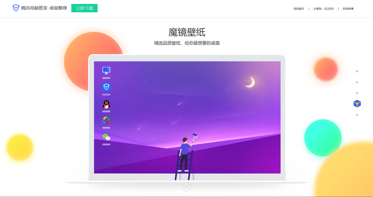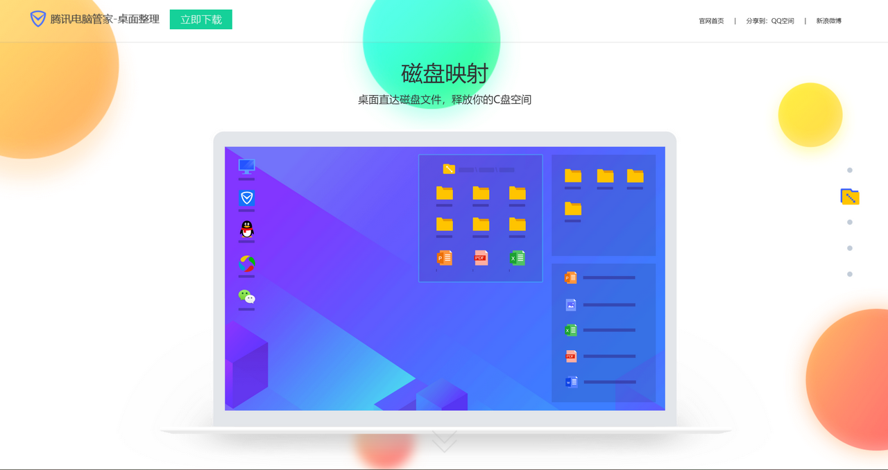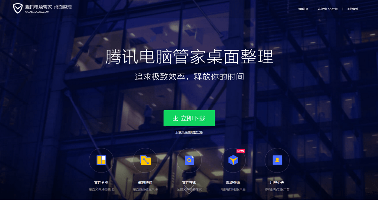 腾讯桌面整理来自腾讯旗下腾讯电脑管家推出的专属桌面整理软件,腾讯桌面整理可以帮助用户这门很好的管理电脑桌面文件和软件,并根据同类设置好区域,可以将你的桌面管理的井井有条。腾讯桌面整理还内置魔镜电脑桌面可以让使用者每隔一会儿就换个电脑桌面换个心情。腾讯桌面整理还可以搞笑的讲的C盘和电脑一键清理,回收站和桌面上的大文件会实现一键清理哦!