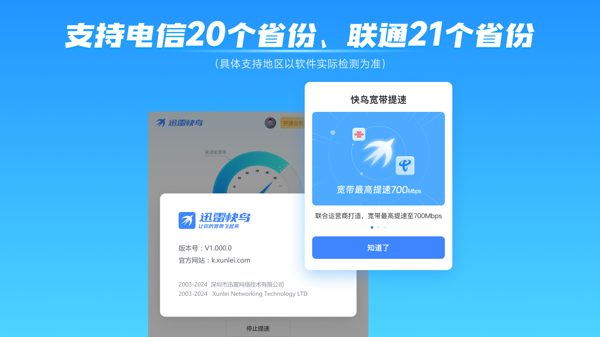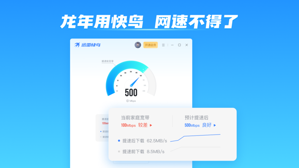 智能检测与高效提速操作:在成功登录迅雷快鸟客户端后,软件将自动启动智能检测功能,对用户当前的宽带连接状况、网络速度以及可提速的潜力等进行全面、精准的检测与分析。检测过程通常只需短暂的时间即可完成,随后软件将根据检测结果判断用户是否符合提速条件。
