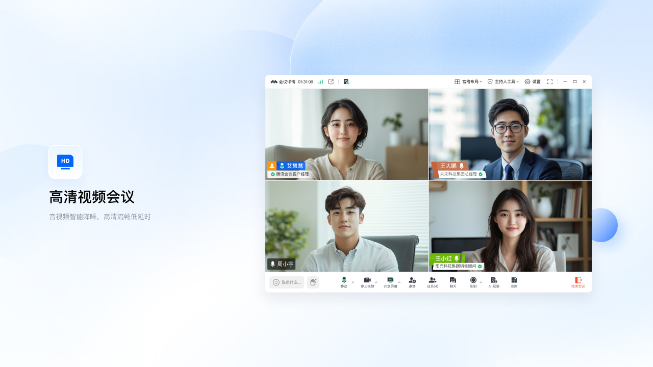 支持多人同时参与高清视频通话以及高品质语音交流,视频经过智能降噪处理,即便在复杂网络环境中,也能确保用户拥有优质流畅的沟通体验。