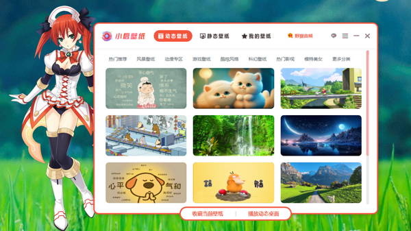 动态与静态壁纸切换:在壁纸展示方式上提供了卓越的灵活性,完美支持动态壁纸和静态壁纸两种模式,并且两者之间能够实现无缝、不间断切换,且互不干扰。