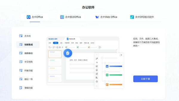 无缝对接,精准互通:用户无论是接收来自微软 Office 软件创建的 doc、xlsx、ppt、pptx 等各类文档,还是需要将永中 Office 生成的文档在微软 Office 环境中使用,都能够轻松实现无缝对接与精准交互。