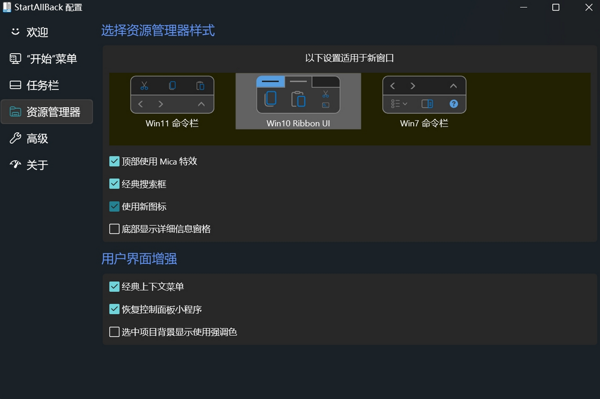 资源管理器随心变:面对资源管理器,StartAllBack 提供了 Windows 11 版、Windows 10 版、Windows 7 版三种风格迥异的 “皮肤”,一键切换,瞬间找回对应版本的原汁原味,操作习惯无缝衔接,效率自然水涨船高。
