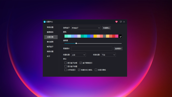 全方位盒子外观定制:从盒子大小、摆放位置,到字体风格、色彩搭配,乃至背景图选取,提供了海量自定义选项。还能精细调控盒子的透明度与圆角弧度,让每一个盒子都不仅是实用的收纳单元,更是彰显个人品味的美学标识。
