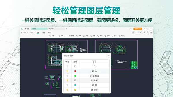 智能图层管理:轻轻一键,即可灵活操控指定图层的开关,让复杂图纸的查看变得条理清晰,用户得以聚焦关键区域,编辑特定部分,工作效率扶摇直上。