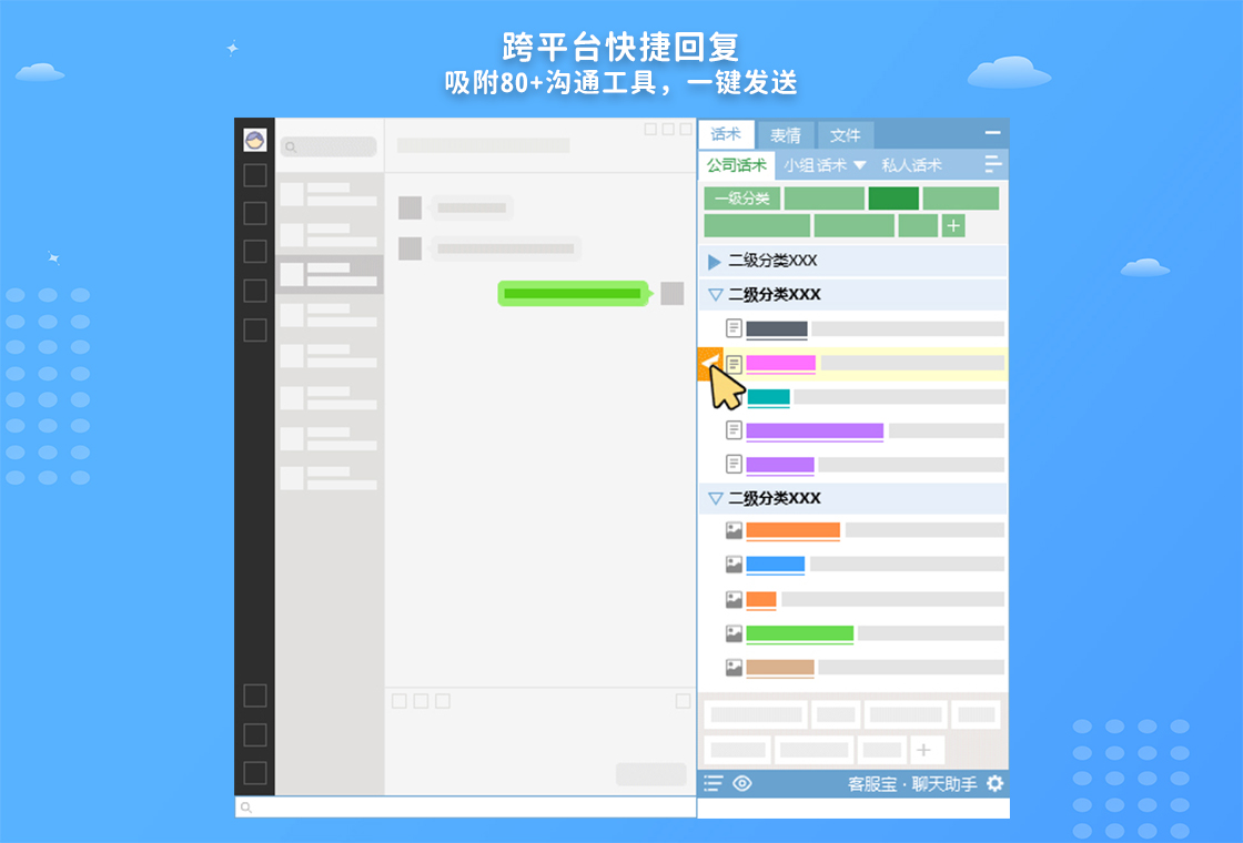 智能检索功能:拥有智能搜索能力,客服人员输入关键词后,软件能迅速定位到所需话术,确保回复的精准度与时效性。