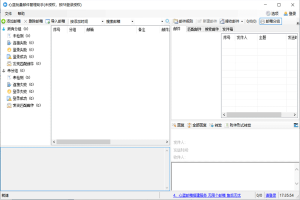支持高达 500 万邮箱的批量导入,也能进行批量验证邮箱密码、登录、查收、导出、删除邮件等操作,可极大提高邮箱管理效率。