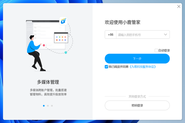 小鹿管家电脑版是一款功能全面、操作简便的企业营销工具,小鹿管家2025最新版提供多平台的账户报告软件系列,用户可以轻松管理和查看各个平台的推广效果和账户数据,还支持不同平台的编辑器软件,帮助用户便捷地进行广告文案和推广素材的编辑工作。
