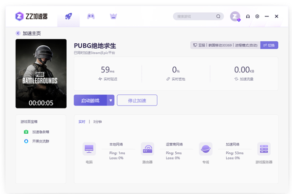 ZZ加速器软件提供了非常直观的用户操作界面,只需点击连接按钮即可快速启动加速,不需要太多复杂的配置操作。
