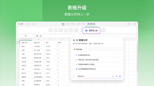 AI写公式:无需记忆函数,直接用语言描述,由WPS AI来完成。