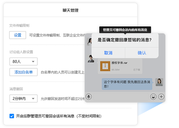 操作简单易于上手:界面设计简洁直观,操作流程清晰易懂,拥有媲美 QQ、微信的良好用户体验。有效降低了用户的学习成本,便于企业员工快速掌握并熟练使用。