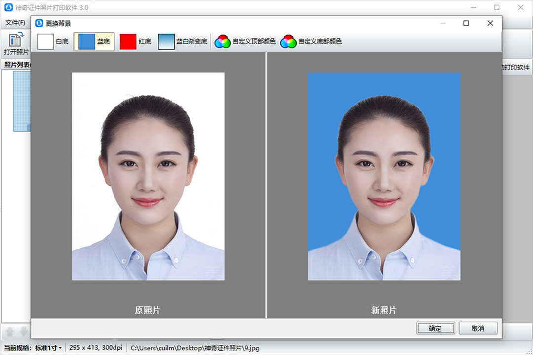 细节优化与自然过渡:AI 处理能保证人物边缘与新底色过渡自然,发丝等细节清晰,使证件照符合高质量标准。