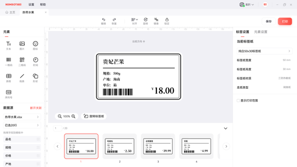 批量打印:可一键导入商品库,轻松实现批量打印,节省时间和精力,提高工作效率。