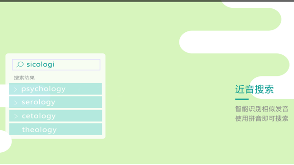 支持近音词搜索,能根据用户输入的近音词找到正确词汇。具备近义词比较功能,方便用户准确理解和使用词汇。