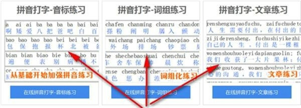 拼音打字练习:设有音节练习、词汇练习、文章练习等,让用户了解拼音打字方法,学习标准拼音,有效提高拼音打字速度和拼音掌握能力。