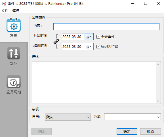 Rainlendar pro电脑版是一款功能强大且界面优美的桌面日历软件,Rainlendar pro客户端支持完全自定义显示内容,用户可以自由调整日历中显示的信息,支持待办事项、任务、事件、提醒等,用户还可以根据需要选择不同的视图模式,确保日程安排清晰明了。