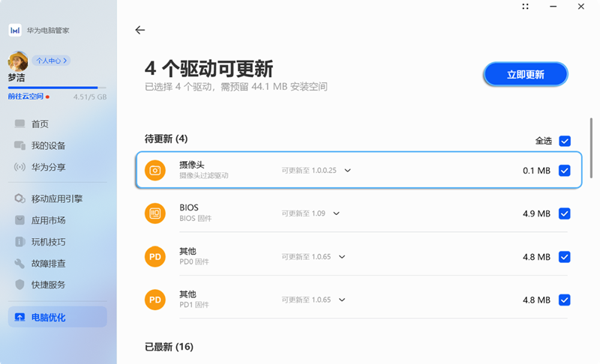 深度优化,释放电脑潜能:华为电脑管家具备强大的电脑优化功能,能够对电脑进行全面细致的扫描。无论是安全隐患、系统漏洞,还是硬件故障,都能精准检测,并为用户提供专业详尽的解决方案与优化建议。