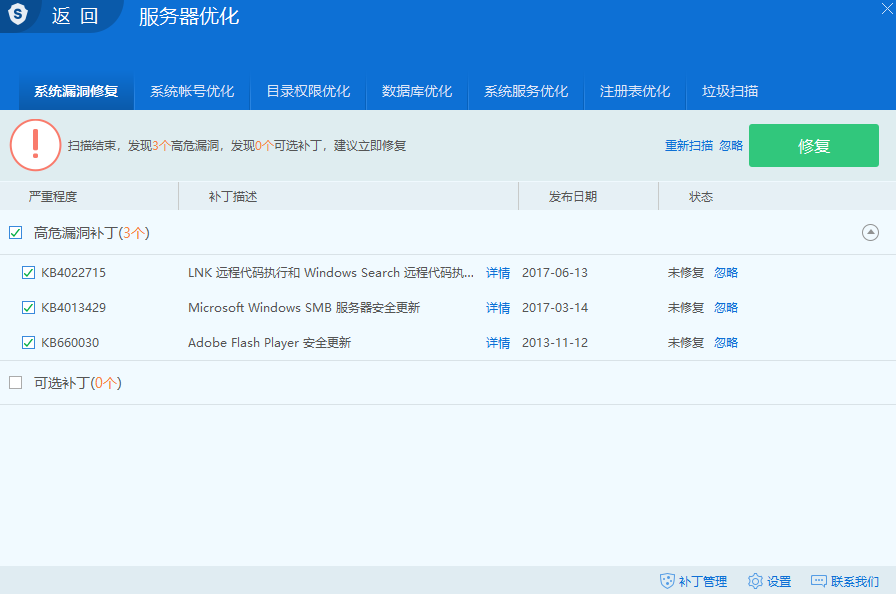 补丁自动修复:从官方获取补丁,自动下载、安装并配置,备份数据,复查确保漏洞修复且不影响业务。