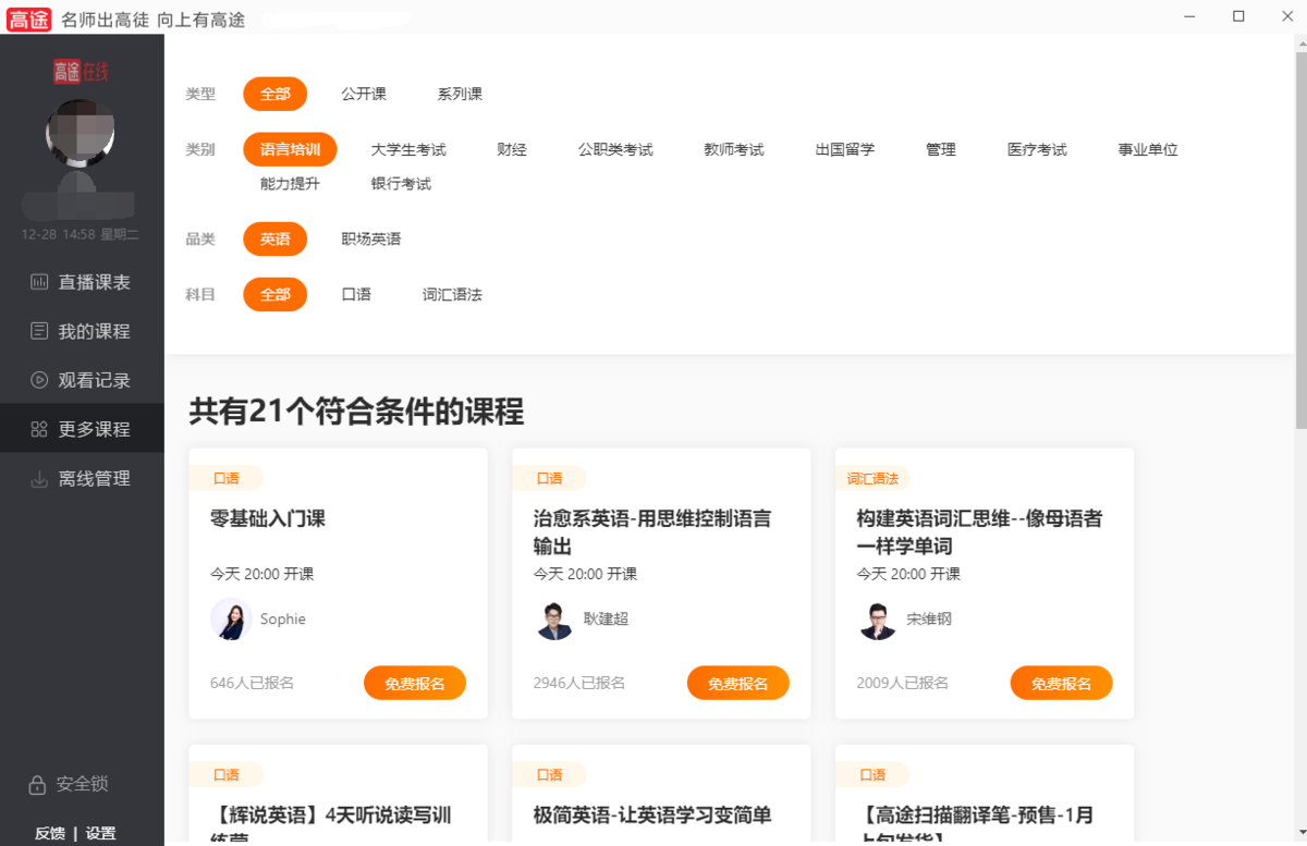 高途在线电脑版是一款专为师生互动设计的学习平台,高途在线PC客户端能精准匹配教师与学生的需求,帮助老师更有效地找到合适的学生,同时让学生快速找到适合自己的教师资源,支持在线讨论、直播授课与即时消息功能,促进师生之间的即时沟通,加强学习中的互动性。