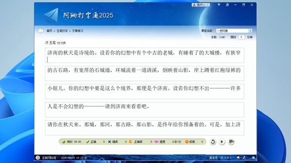 在五笔打字练习方面,阿珊打字通打造了一套涵盖字根、单词和文章的全方位练习体系。