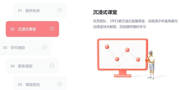 拥有专业的教研团队,研发出了贴近课程标准、遵循学习科学和学科特点的课程体系,能提供全科目的课程内容。