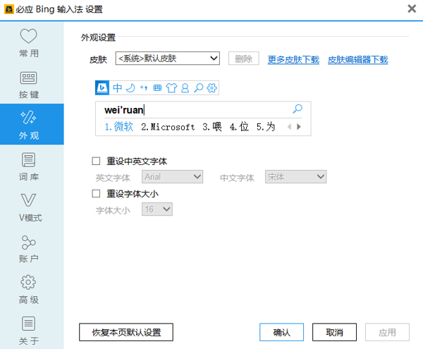 除了中文输入外,必应Bing输入法还支持多种语言输入,尤其对于使用中文和英文的用户,切换语言非常方便,支持英中互译、拼音与英文字母的混合输入。