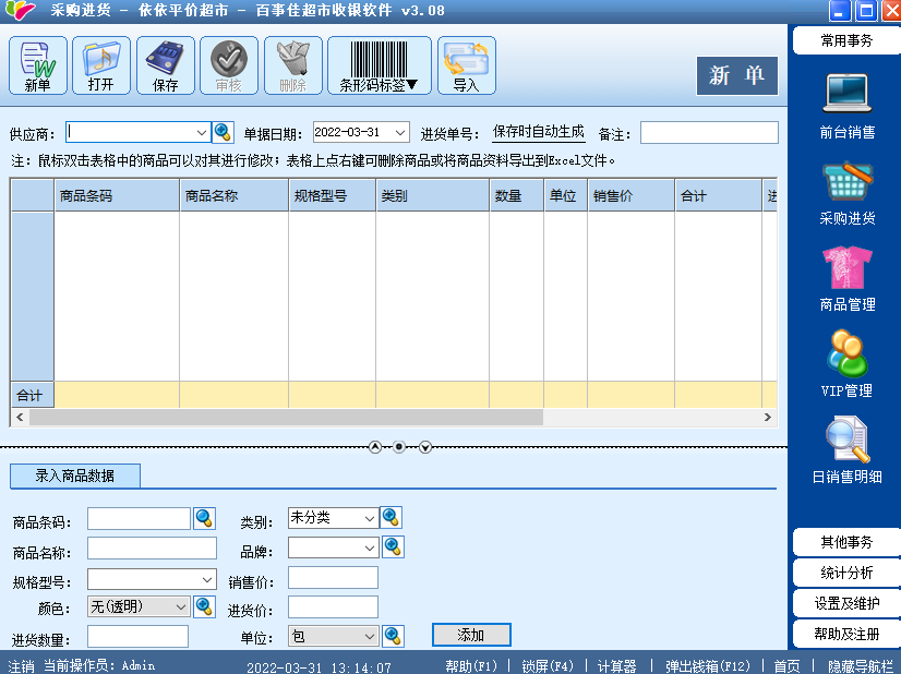 百事佳超市收银软件是一款免费好用的收银软件,百事佳超市收银软件最新版之中用户可以直接将商品以及价格导入到软件之中,该软件便可以直接整理好价格以及型号,在经过相关设定就可以直接录入价格,帮助超市可以直接扫码结账了。