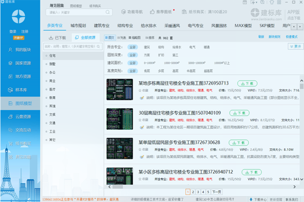 拥有 20000 + 建筑图纸、模型,包括规划、住宅、别墅、办公、商业等各种类别,可供用户参考学习。