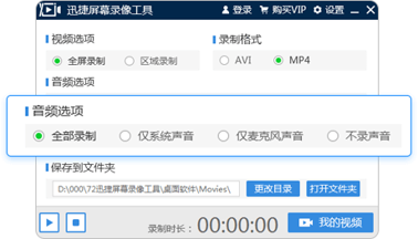 不仅支持屏幕视频录制,还能同时录制电脑系统音频和麦克风音频。用户可以选择仅录制系统音、仅录制麦克风音或同时录制两者。