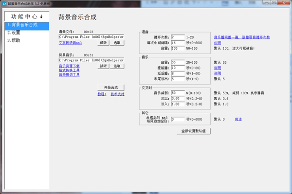 背景音乐合成助手电脑版是一款功能强大且实用的音乐制作工具,背景音乐合成助手PC版支持将已录制的语音文件和音乐文件混合,用户可以根据需要创建出独特的音频组合,提供了多种音频设置选项,用户可以根据具体要求调整音频的播放方式。
