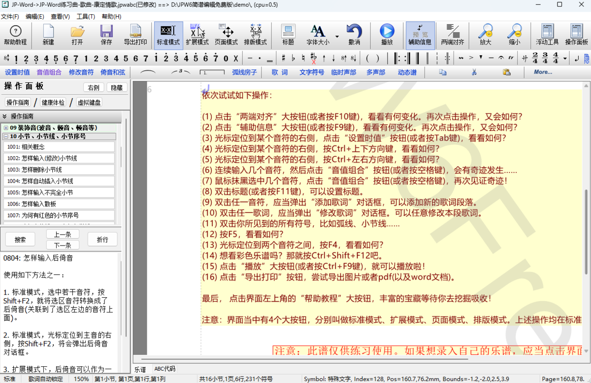 JP-Word简谱编辑之中有着非常强大的排谱功能,该软件出来的谱子非常好认,基本上学过的都可以看出来,并且该谱子文件可以在相关软件之中播放,帮助用户可以快速演奏该内容。