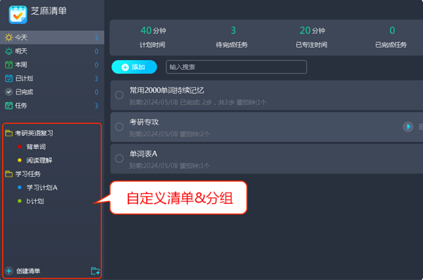 任务管理灵活高效:支持创建多个清单和分组,可将工作、学习、生活中的任务分类管理,还能为任务添加标签,方便快速查找。同时,复杂任务可分解为子任务,便于逐步推进,让任务管理更加个性化、有条理。