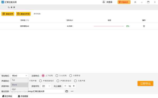 操作简单便捷:软件界面简洁易懂,操作步骤清晰明了,即使是电脑小白也能轻松上手。只需简单几步设置,就能快速完成汉字注音任务。