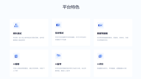监考防作弊能力强:具备人脸识别、声音识别、键盘监控等技术,还有双机位考试模式,可对考生的异常操作和行为进行分析,标记作弊风险,大大减少考试作弊行为,保障考试的公平公正。