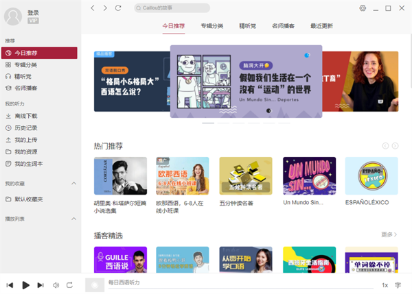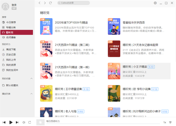 每日西语听力电脑版是一款直观全面的西班牙语听力学习软件,每日西语听力PC版提供各种西班牙语听力材料,涵盖新闻、对话、故事、生活场景等多种类型,可以从初级到高级的听力练习课程,帮助学习者循序渐进地提升听力能力,帮助用户全面提升听力理解能力。