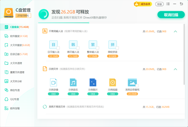 支持 “一键智能清理” 与 “自定义清理” 双模式,新手可直接一键释放 GB 级存储空间,进阶用户可筛选清理范围。