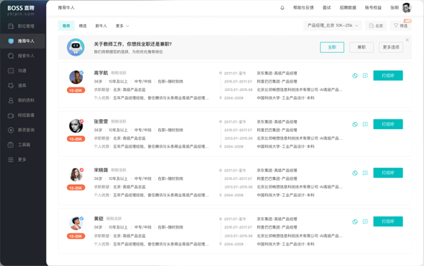 智能精准匹配:借助前沿的人工智能算法与大数据技术,BOSS 直聘构建了一套智能高效的匹配系统。