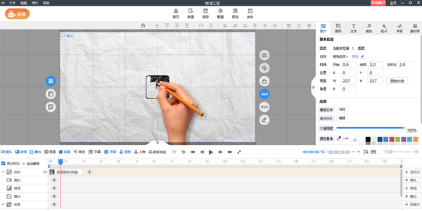 支持新建空白项目、打开旧工程、编辑在线模板三种创建方式,搭配文本 “笔顺书写” 等便捷功能,小白也能快速产出专业质感的手势动画视频。