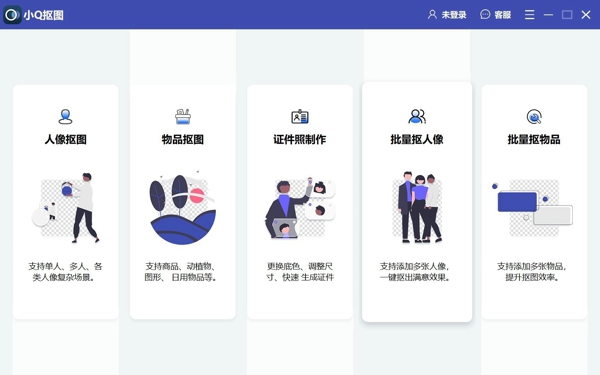 小Q抠图电脑版是一款简单好用的智能抠图软件,小Q抠图2026最新版能够快速识别图片中的主体与背景,自动进行抠图处理,帮助用户获取所需的图片内容,可一键完成证件照换底色、复杂图片自定义换背景,内置多种纯色背景与照片比例模板,满足不同证件照、日常修图需求。