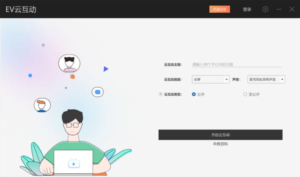 EV云互动电脑版是一款功能全面、操作简便且安全可靠的互动会议软件,EV云互动客户端支持高清直播和视频会议,能够让图像和音频的清晰传输,适应各种网络环境,保证流畅的直播体验,避免卡顿和延迟,适合大规模在线活动。