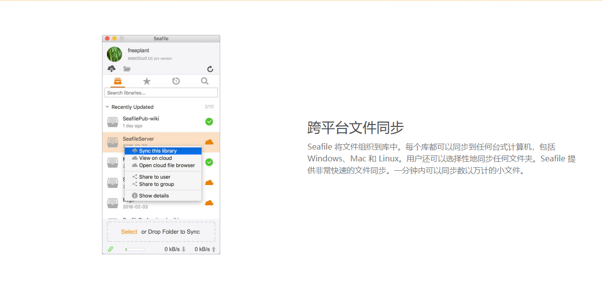 Seafile是一款非常强大的云储存软件,Seafile免费版之中用户可以将自身的文件传输到云端储存起来,该软件有着非常多的储存空间,足够用户单人使用,不过让软件直供上传和下载文件,没有分享功能,只适合单人使用。